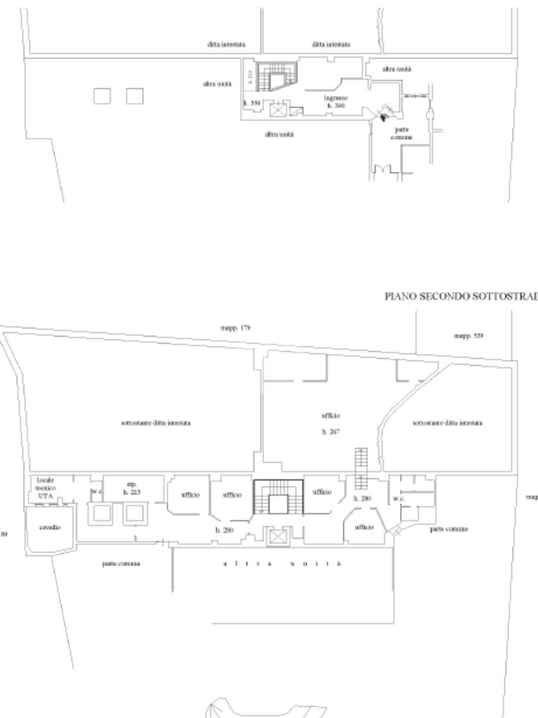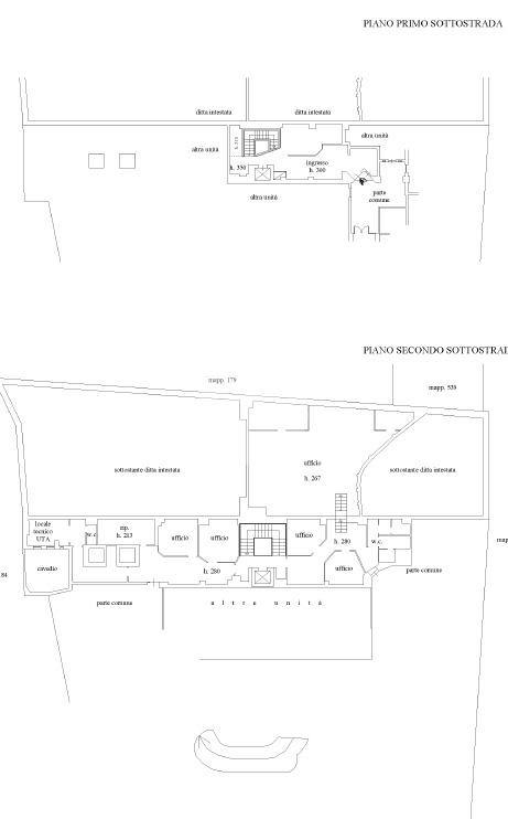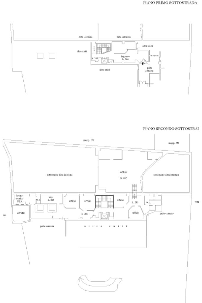 I piani sottostrada ospitano ampie superfici operative, con grandi ambienti open space affiancati da locali tecnici, servizi e aree ufficio, consentendo una chiara separazione tra funzioni amministrative e operative. La distribuzione interna risulta razionale e altamente flessibile, permettendo una riorganizzazione completa degli spazi in funzione delle necessità dell’utilizzatore finale.