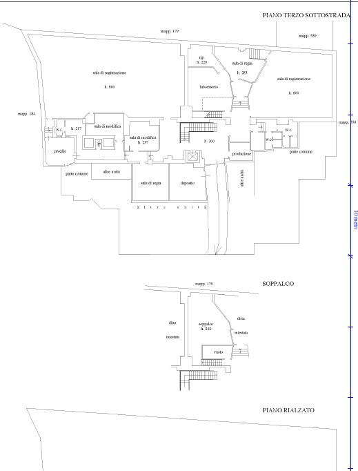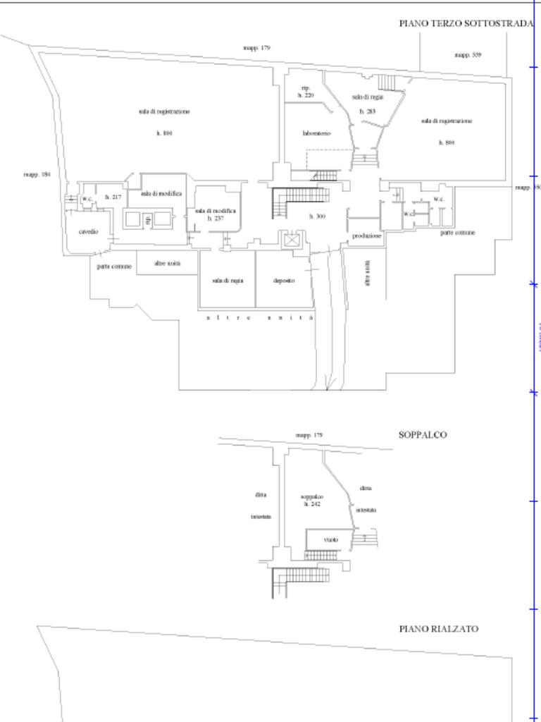 L’accesso principale avviene dal piano rialzato, che può essere destinato ad area di ingresso, accoglienza o funzioni rappresentative. Da questo livello si sviluppa l’intero corpo dell’immobile, articolato su tre piani sottostrada, tutti collegati internamente sia da vani scala sia da un ascensore interno, elemento di particolare valore che facilita e rende più efficienti gli spostamenti tra i vari livelli, agevolando la gestione dei flussi di persone, materiali e attrezzature.